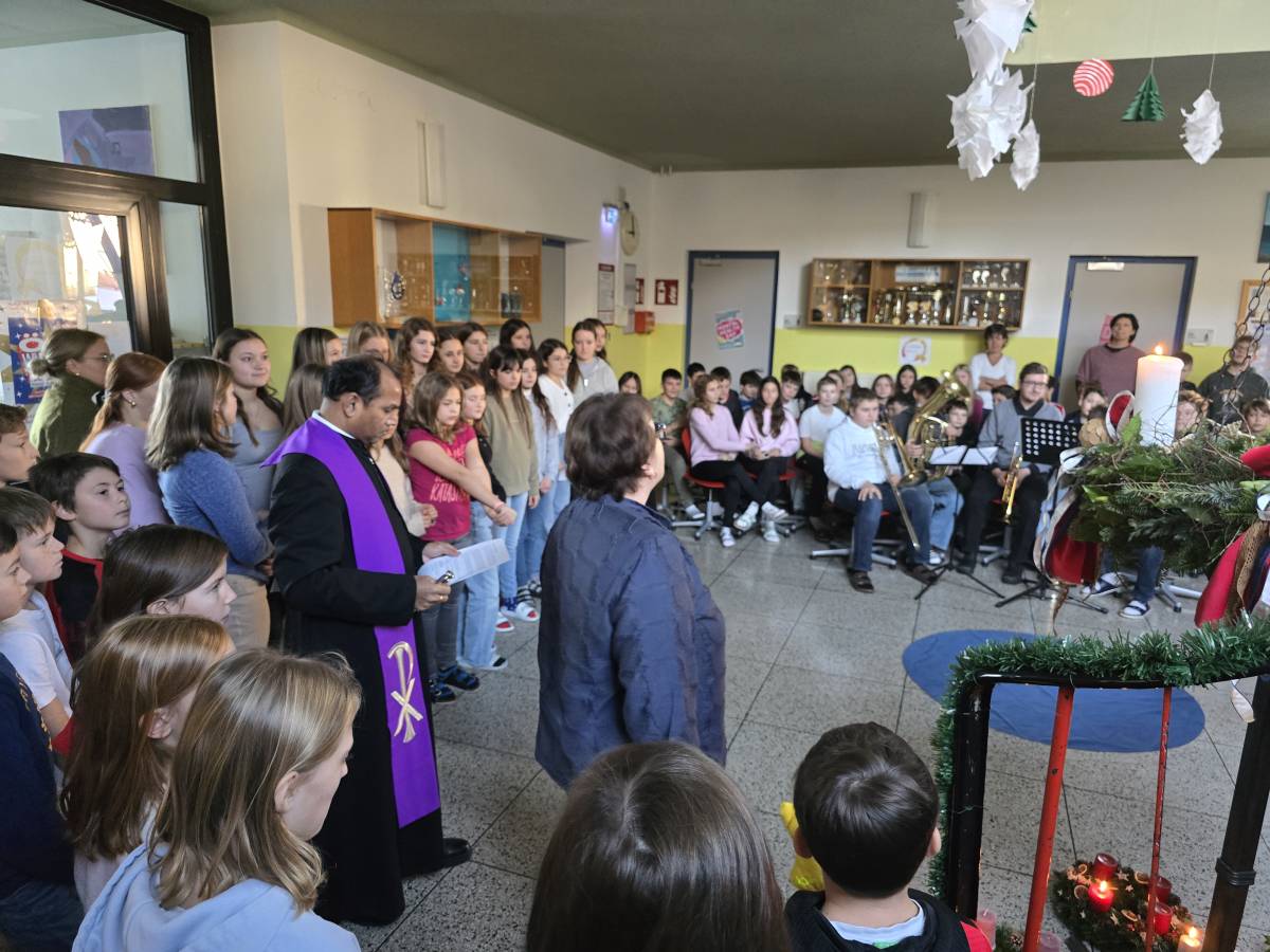 In der adventlich geschmückten Aula der MS Göstling an der Ybbs fand auch heuer wieder die traditionelle Adventkranzweihe statt. Pater Yohanu segnete die liebevoll gestalteten Adventkränze und stimmte die Schulgemeinschaft auf die bevorstehende Adventzeit ein.
