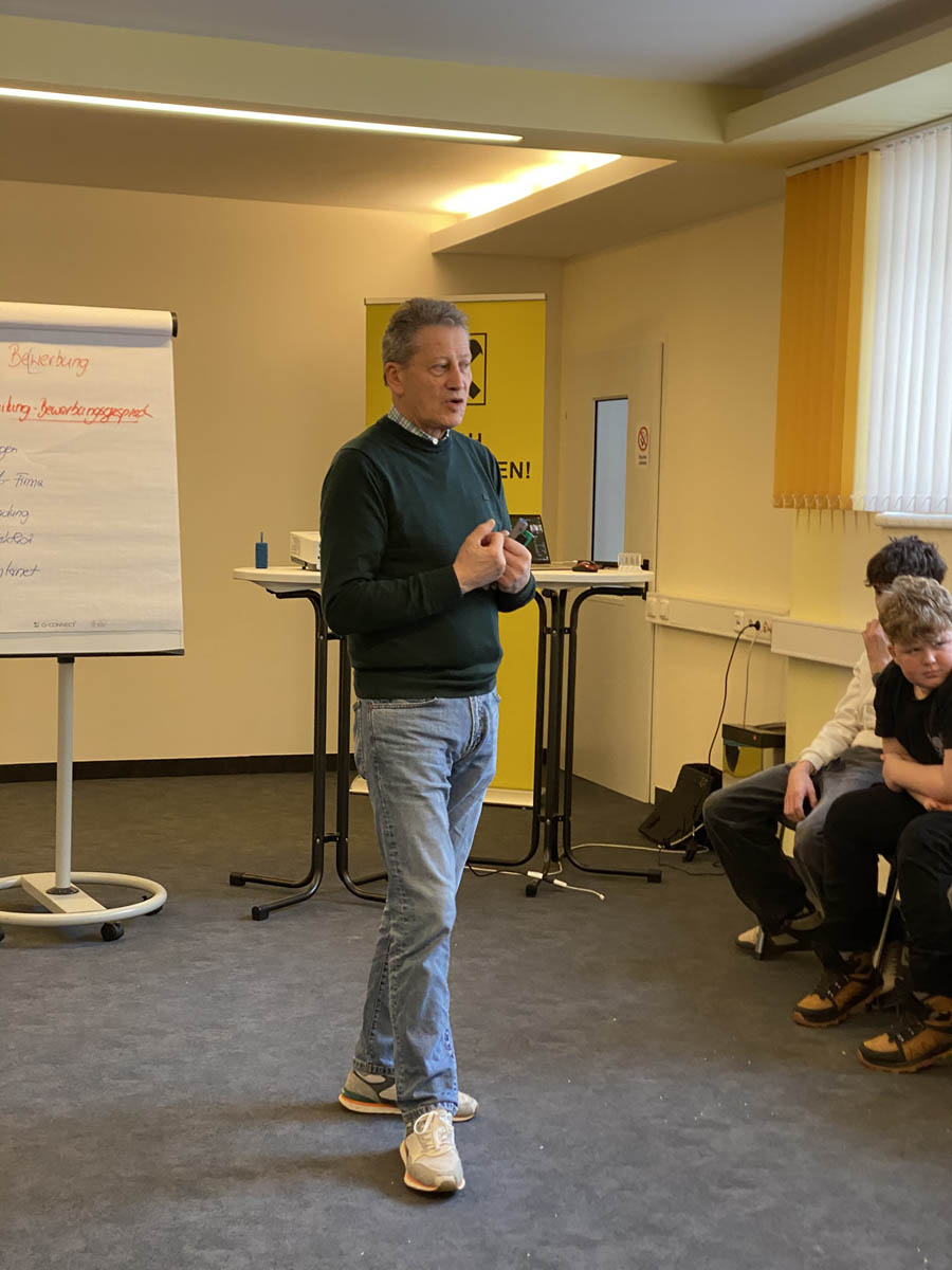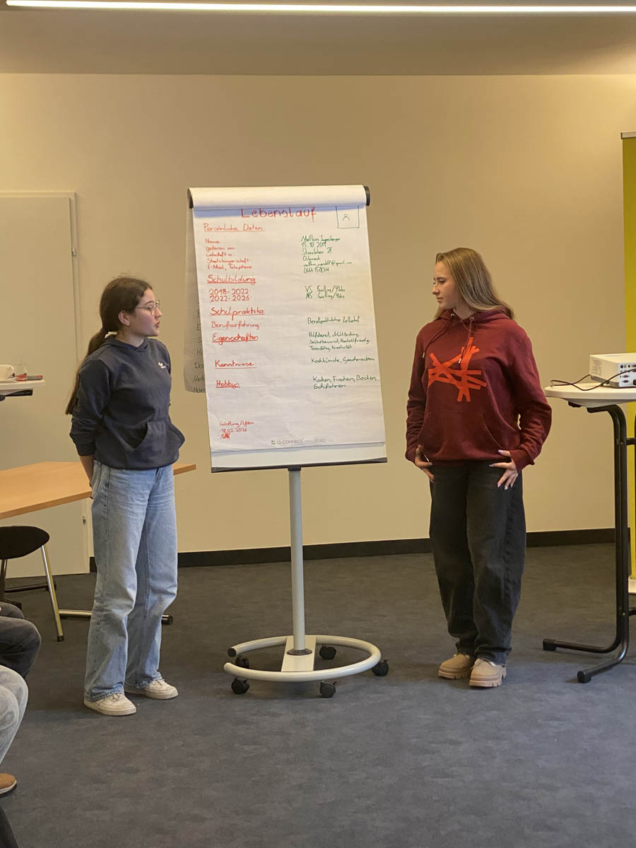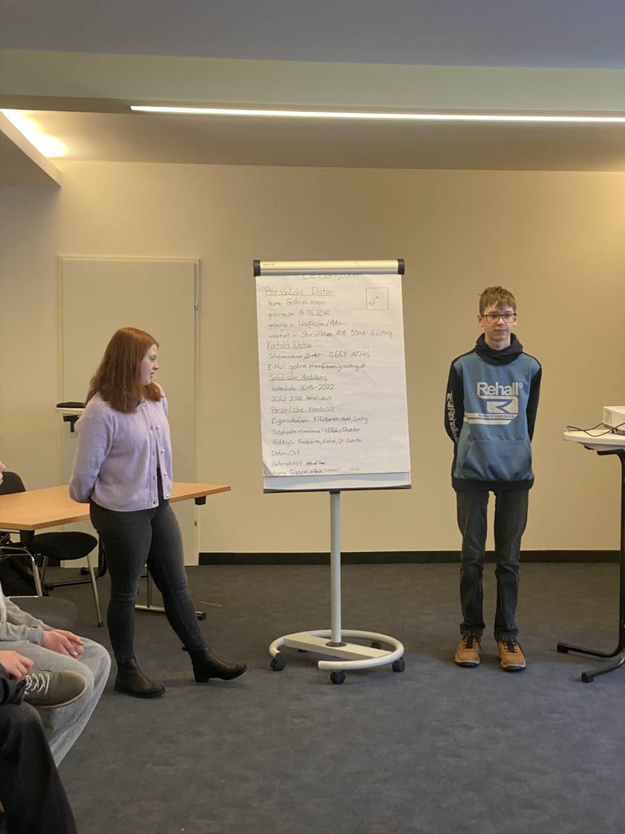 Der Vortragende Christian Trattner von „Corporate Consult“ lud zunächst zu einer Vorstellungsrunde ein, um die Kinder ein wenig einschätzen zu können. Außerdem erstellten die Kinder Lebensläufe, die später präsentiert wurden.