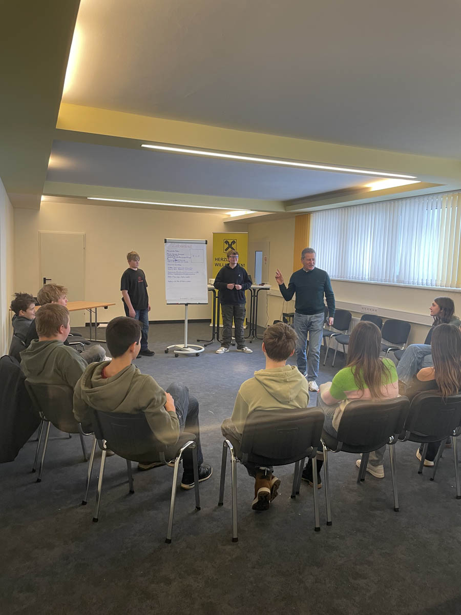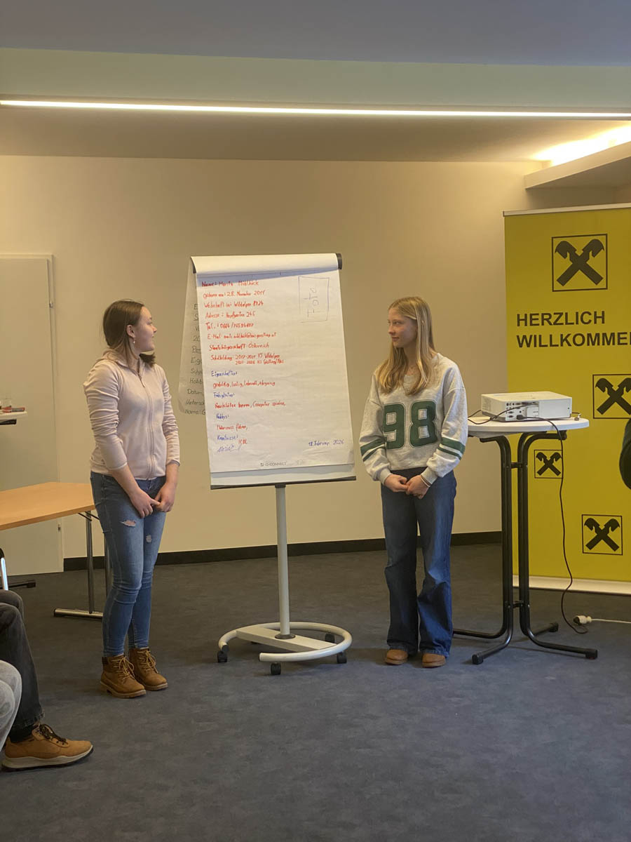 Am 18.2.2026 fand für die beiden 4. Klassen ein Bewerbungstraining statt. Im Rahmen des Trainings bekamen die Schülerinnen in der Raiffeisenbank Göstling an der Ybbs wertvolle Tipps für ihre zukünftigen Bewerbungsgespräche.