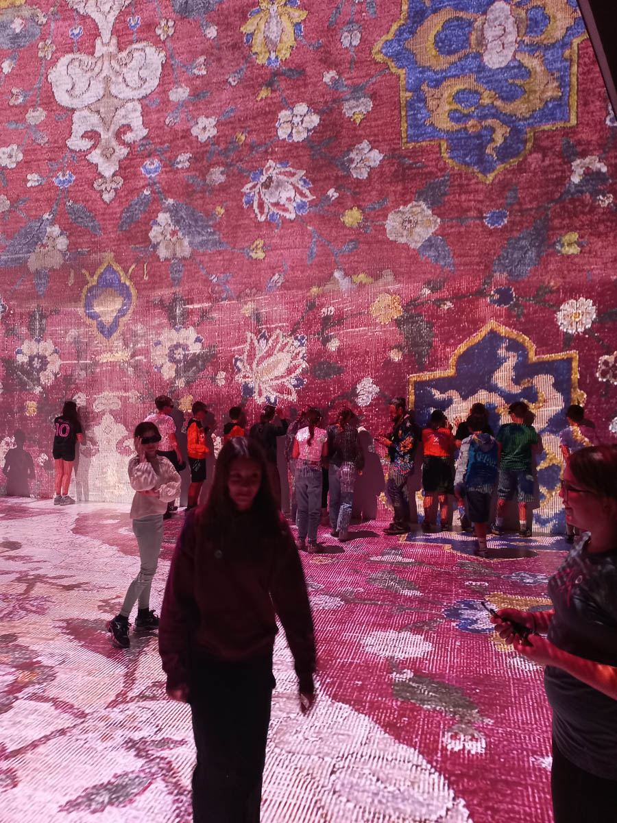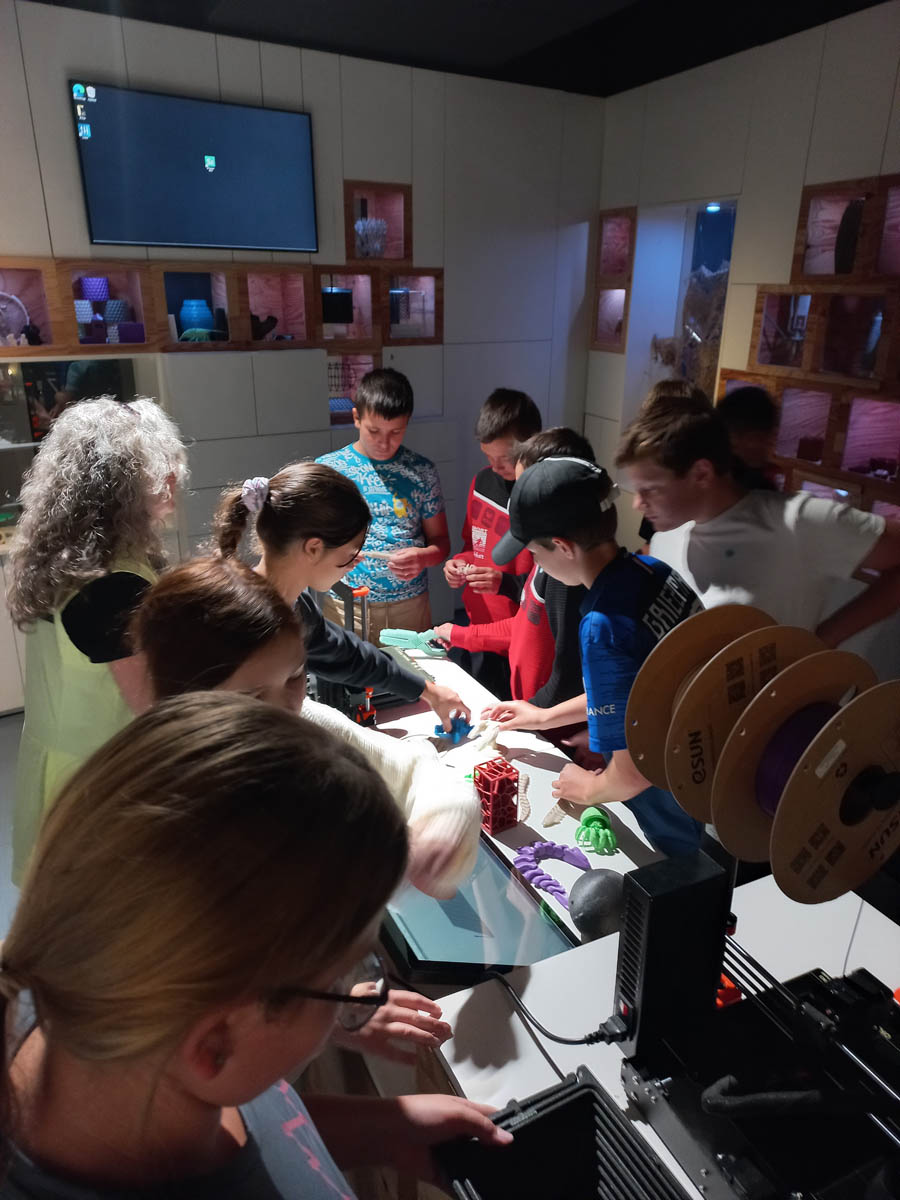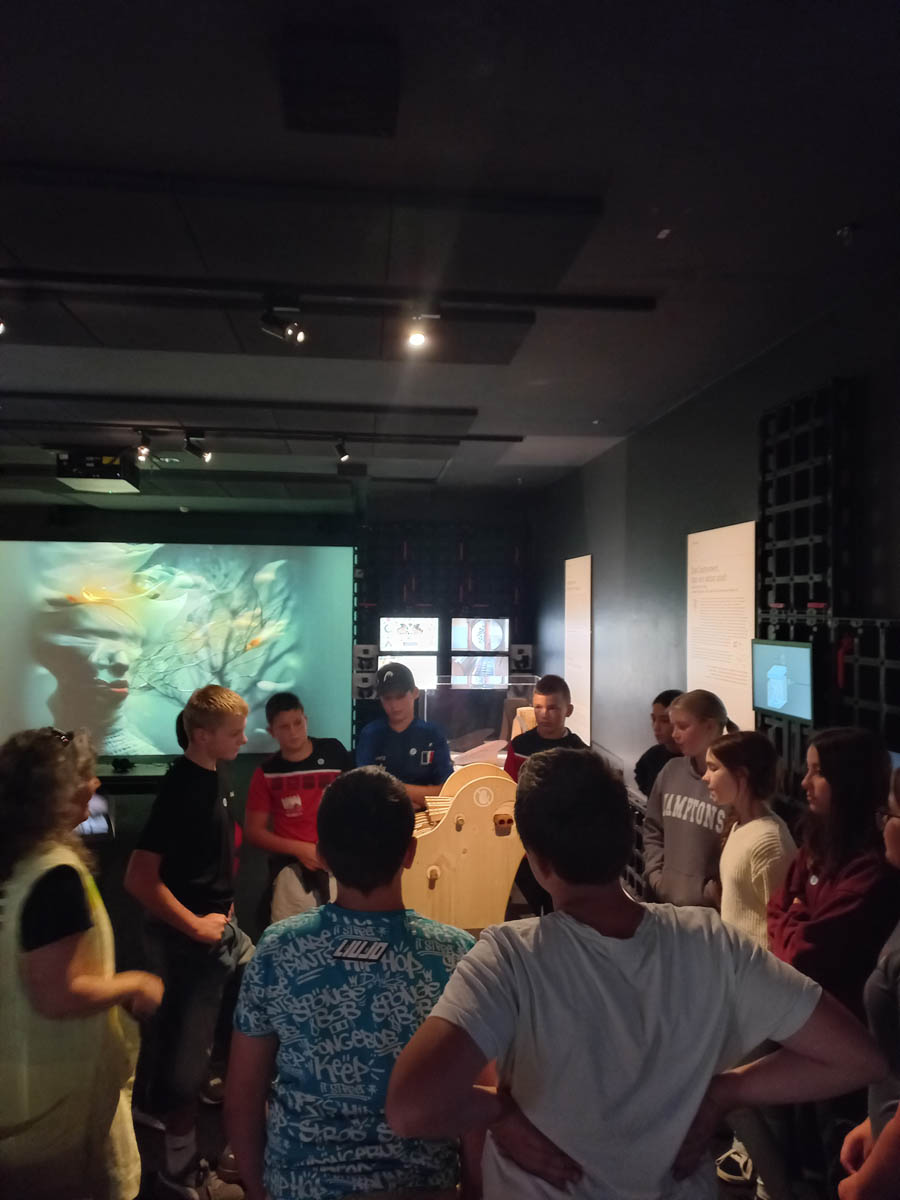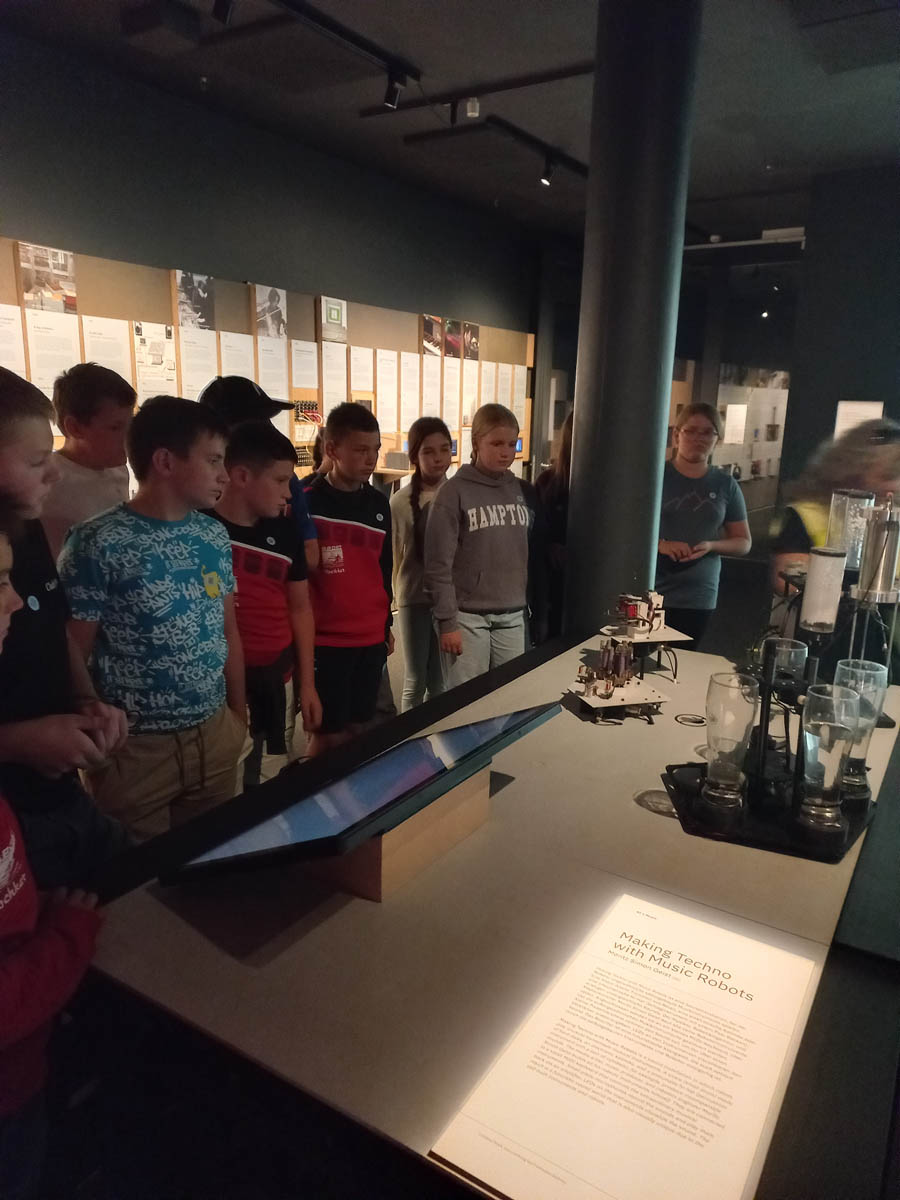 Zuerst besuchten wir das Ars Electronica Center. Wir lernten, wie Computer beim Komponieren und Produzieren von Musik helfen und sogar selbst neue Stücke erschaffen können. Besonders eindrucksvoll war die Vorführung im Deep Space 8K, wo Musik durch KI in Farben und Muster verwandelt wurde. Anschließend sahen wir im 3D-Druck-Bereich, wie digitale Modelle Schicht für Schicht in echte Gegenstände verwandelt werden.