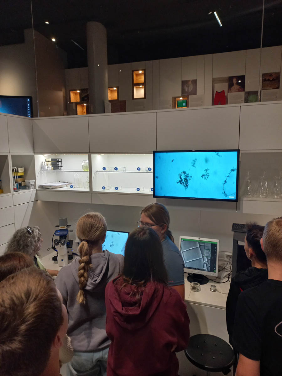 Danach beobachteten wir im Mikroskop ein winziges Bärtierchen. Wir konnten sehen, wie es grüne Algen fraß und sogar Eier legte – ein seltener Moment, der uns die Wunder der Mikrowelt zeigte.