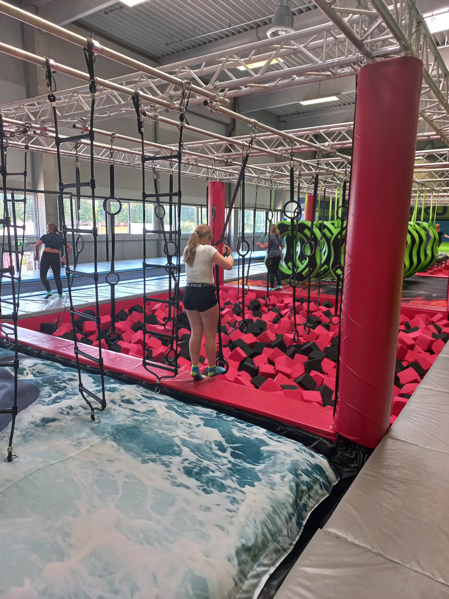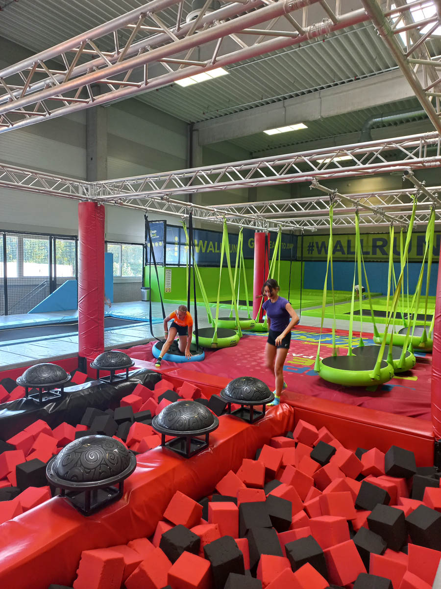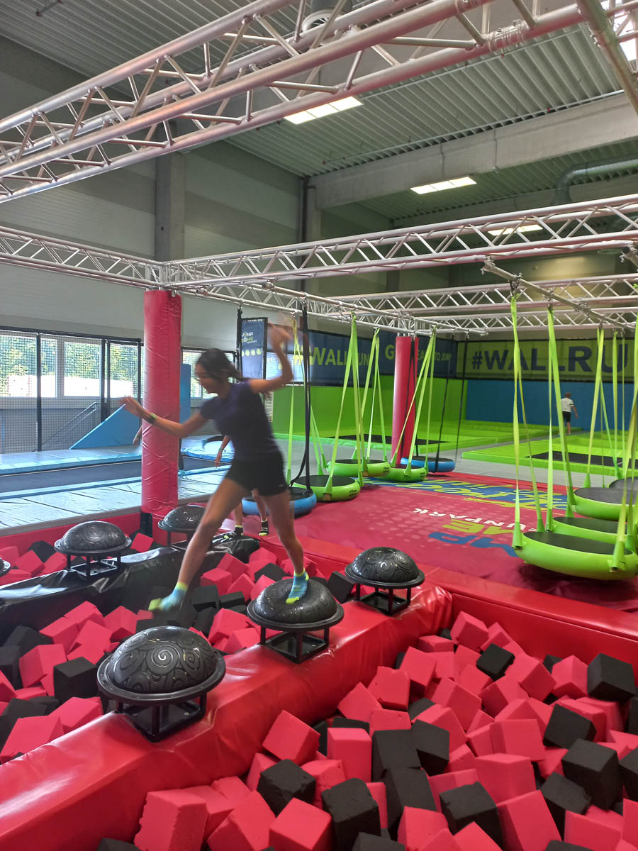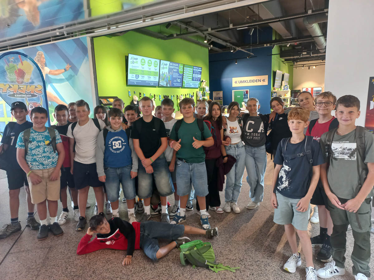 Zum Abschluss ging es in den Jump Dome. Dort warteten große Trampolinflächen, Kletterwände und Parcours auf uns. Nach dem vielen Staunen und Lernen konnten wir uns so richtig austoben. Wir sprangen, liefen, probierten Saltos und hatten jede Menge Spaß. Die sportliche Aktivität war ein perfekter Ausgleich zum Vormittag voller Technik und Forschung.
