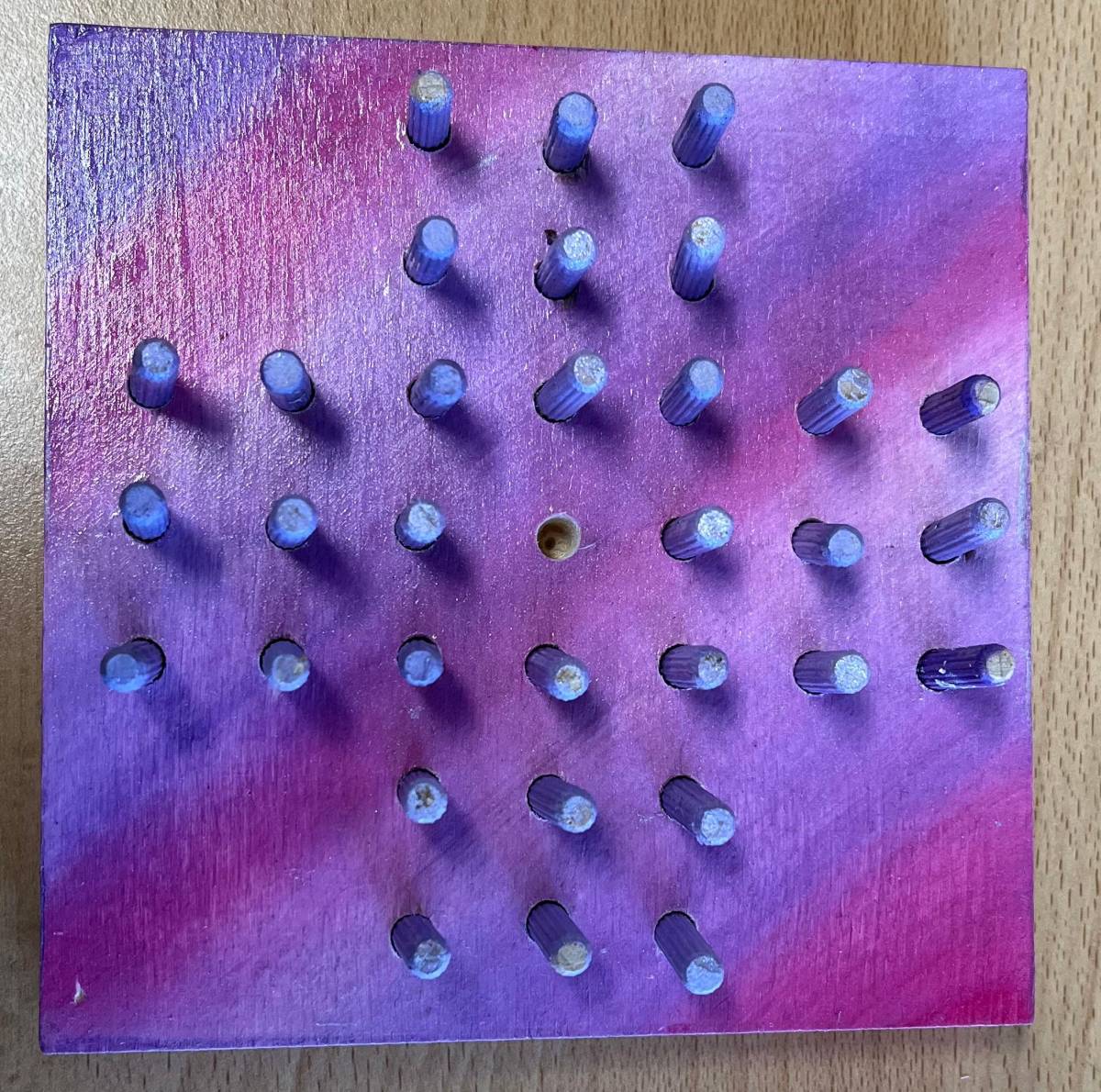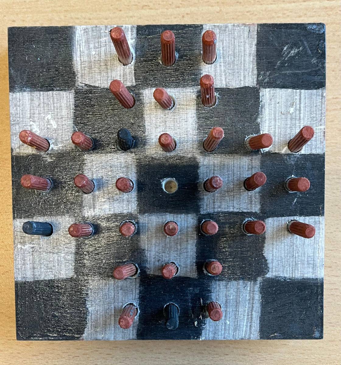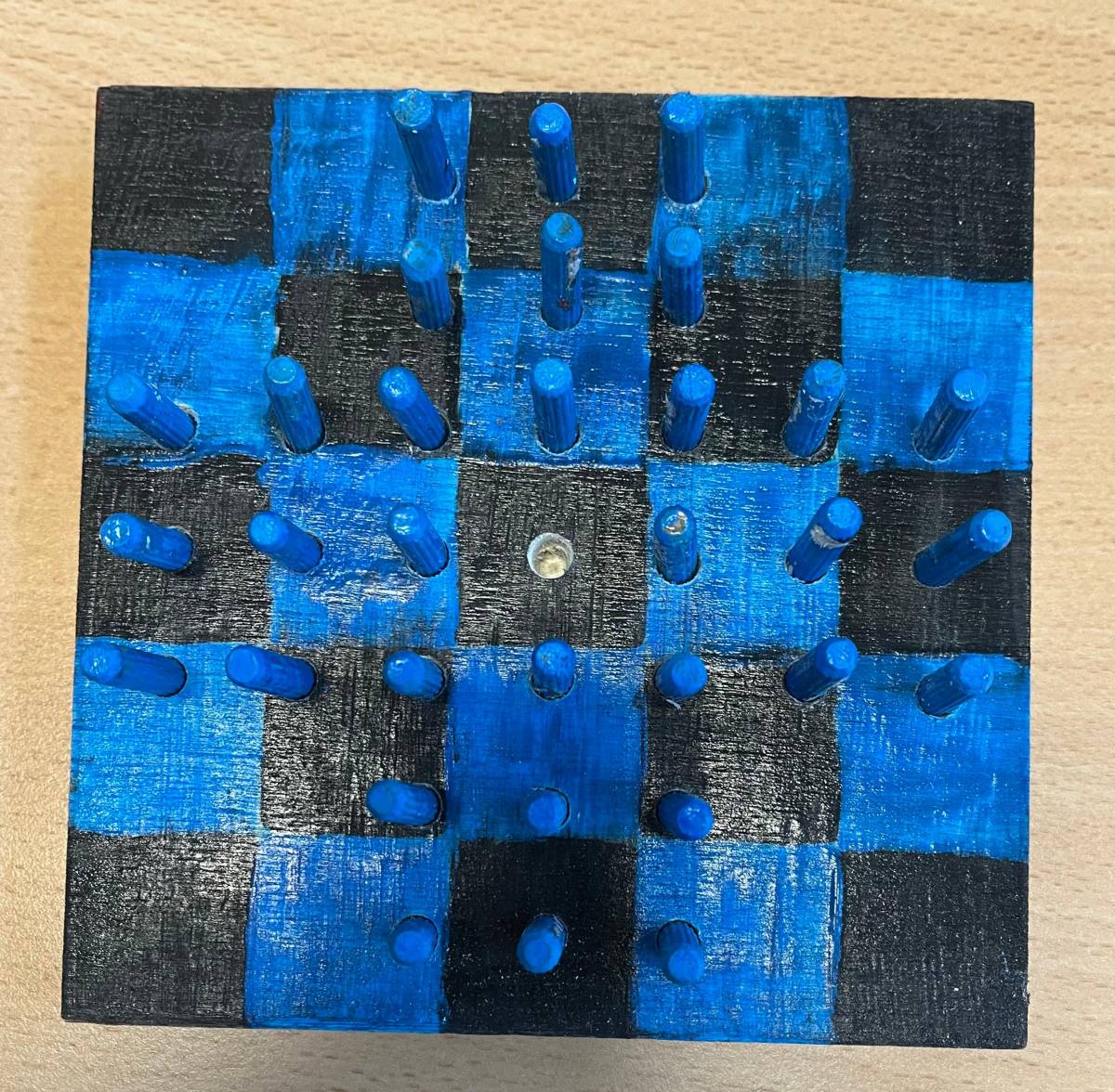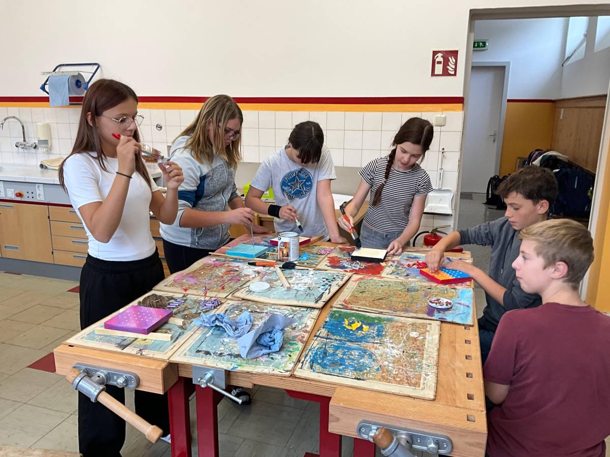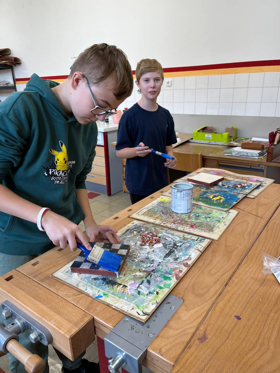 Als praktisches Ergebnis ihrer Arbeit entstanden kreative Solo-Halma-Spiele aus Holz, die mit großer Genauigkeit gebohrt und gestaltet wurden. Ergänzend dazu fertigten die SchülerInnen individuelle Stoffsäckchen an, die sie selbstständig mit der Nähmaschine nähten und die nun zur Aufbewahrung der Spiele dienen.