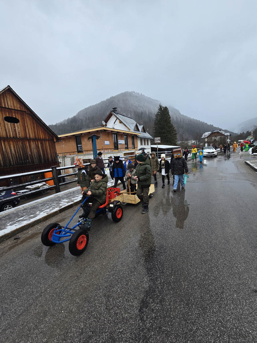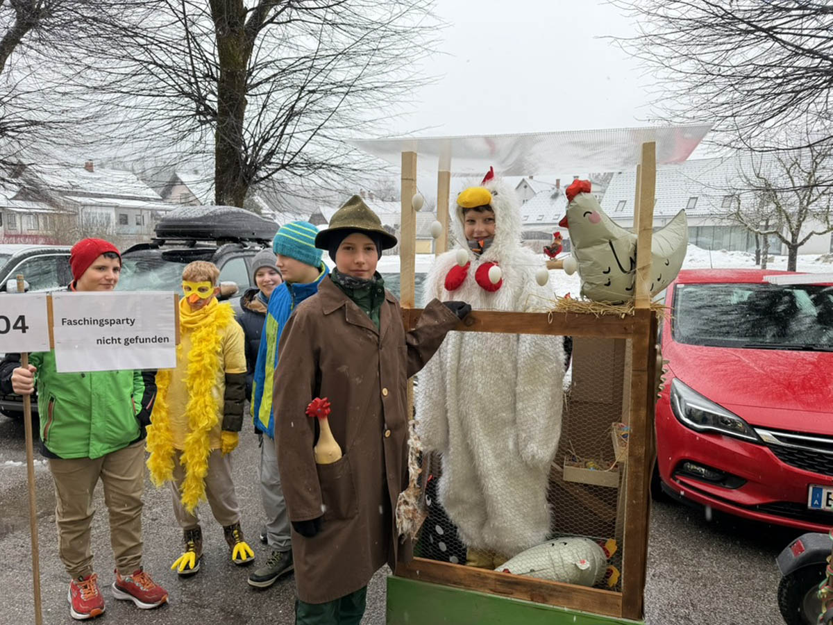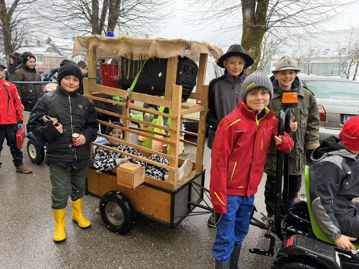 Am Faschingdienstag, 17.2.2026 zeigten die Göstlinger, dass sie an Traditionen festhalten und wetterfest sind! Bei ziemlich unfreundlichem Wetter starteten die Schülerinnen und Schüler der Volksschule und der Mittelschule gemeinsam mit den Kindergartenkindern zum traditionellen Faschingsumzug. Der Gatsch auf der Straße und der nasse Schneefall konnten die Stimmung nicht trüben. Zahlreiche Eltern, Angehörige und viele weitere Zuschauer erfreuten sich an den kreativen Kostümen der Kinder.