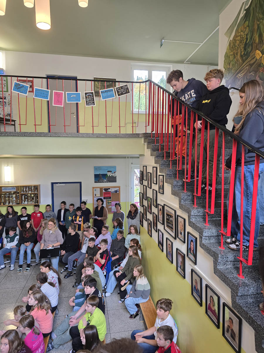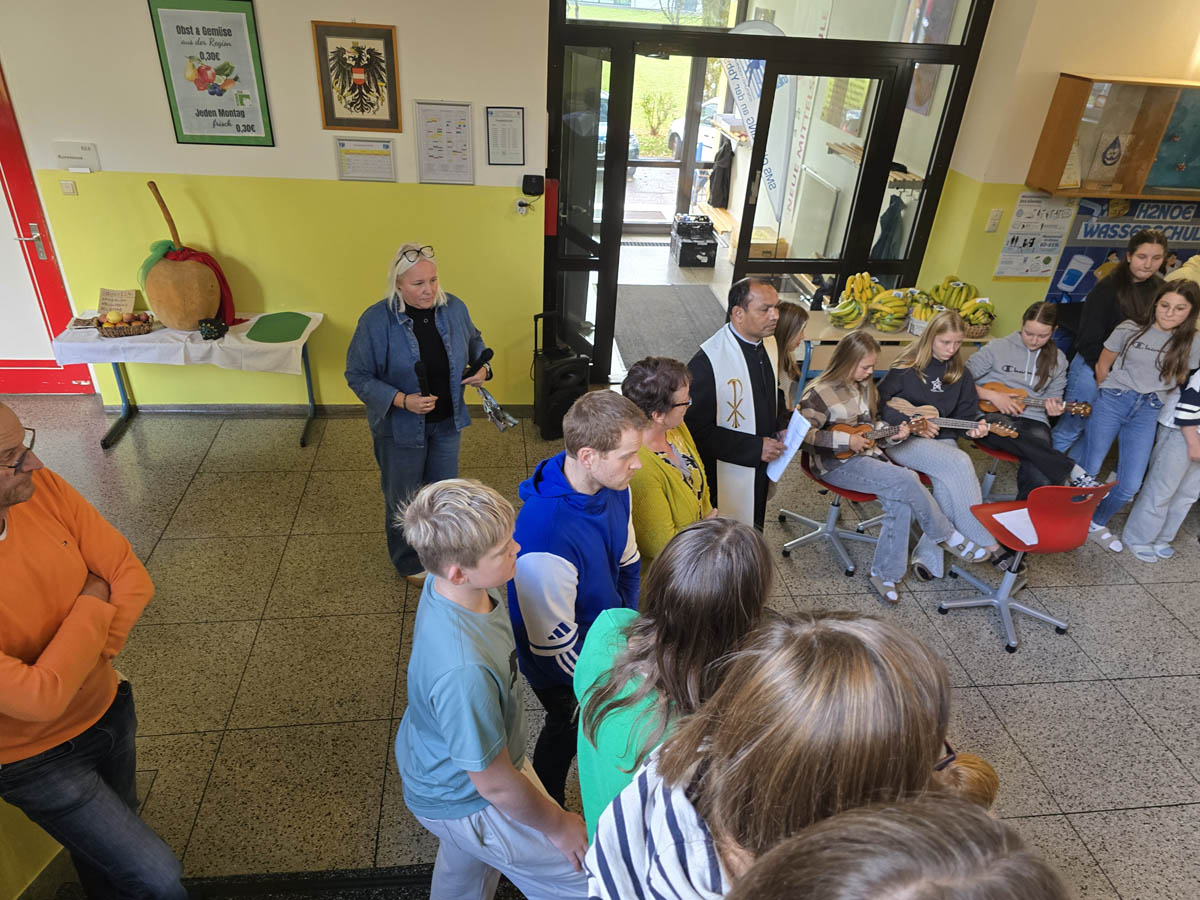 Zum Weltmissionssonntag versammelte sich die gesamte Schulgemeinschaft am 24. Oktober zu einer gemeinsamen Fair Trade Feier in der Aula, um das Bewusstsein für weltweite Solidarität und fairen Handel zu stärken.