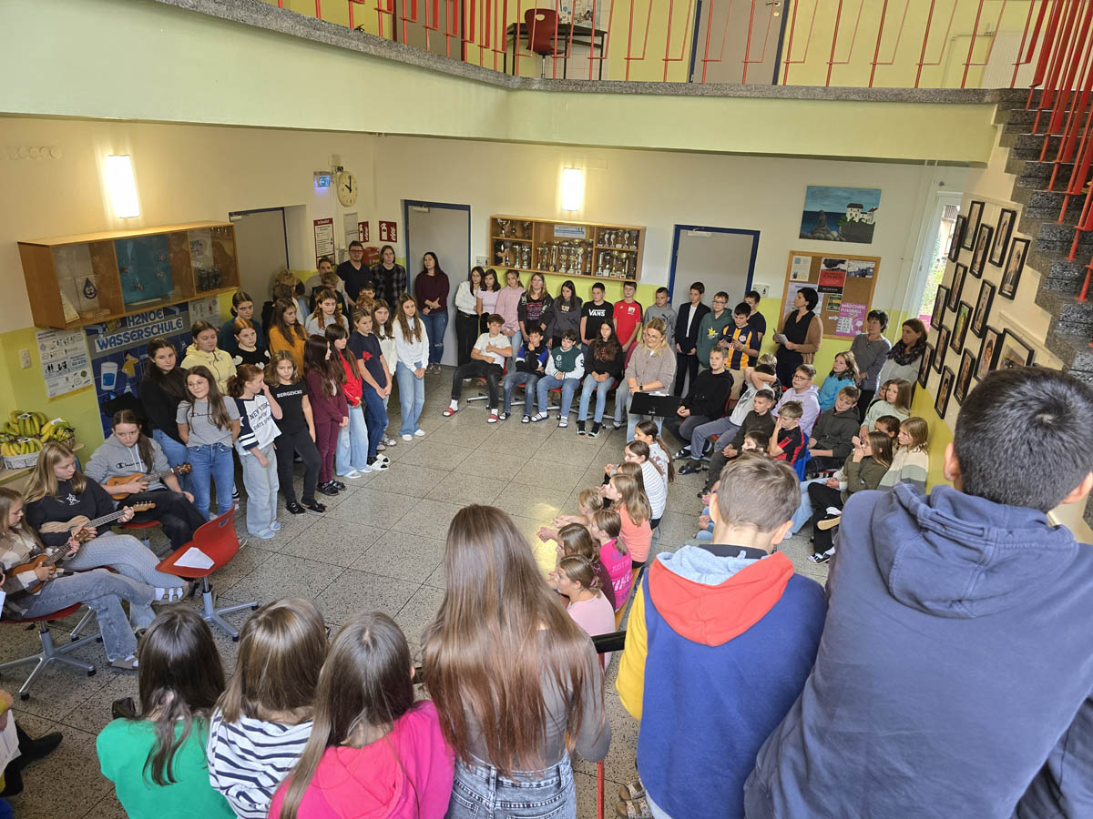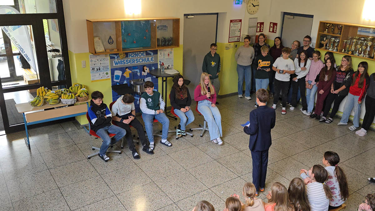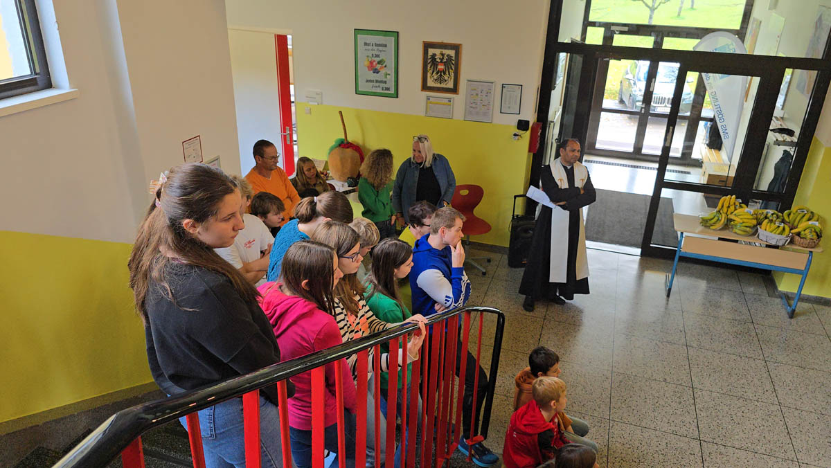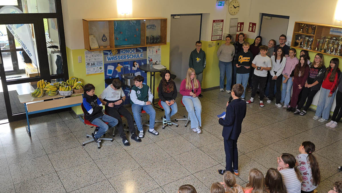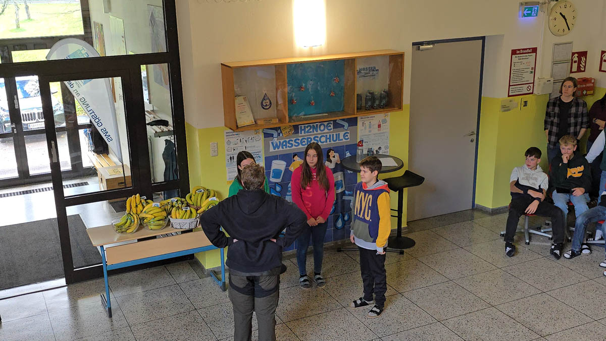 Zum Abschluss erhielten alle Kinder sowie das Lehrerteam Fair Trade Bananen – ein passendes Symbol für den Gedanken des gerechten Handels. Die Verteilung bildete einen gelungenen Abschluss dieser besonderen Veranstaltung.