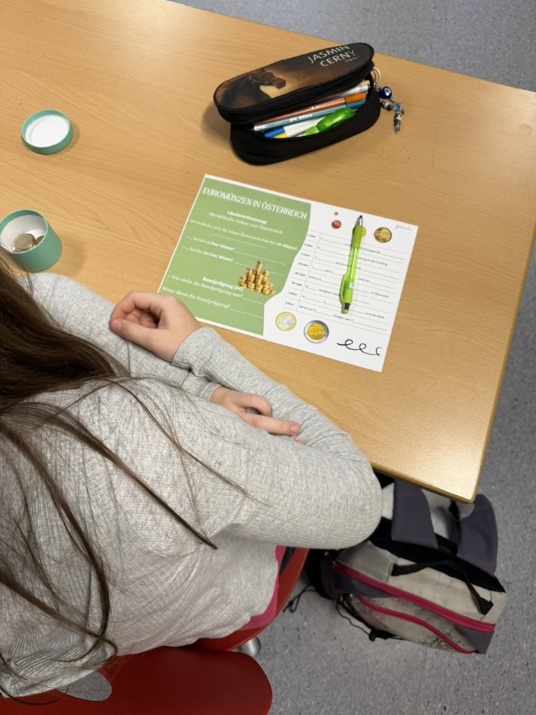 Die Kinder lernten, wie man richtig spart, wie ein Bankomat funktioniert und was man unter einem Kredit versteht. Außerdem beschäftigten sie sich mit den verschiedenen Euromünzen, den Sicherheitsmerkmalen von Geldscheinen sowie mit den unterschiedlichen Währungen in verschiedenen Ländern. Auch die Gestaltung einer eigenen Banknote war Teil des Projekttages und ermöglichte einen praktischen Zugang zum Thema Geld.