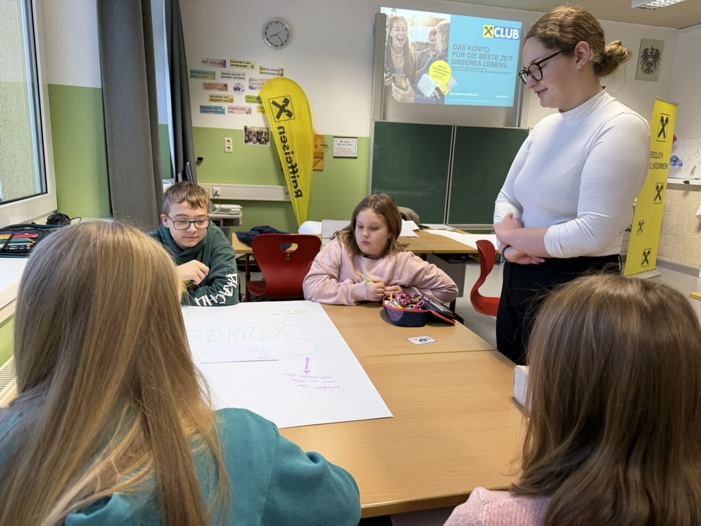 Zusätzliche interessante Einblicke in die Welt des Geldes erhielten die Schülerinnen und Schüler durch die Vertreterinnen der Raiffeisenbank und der Sparkasse, die ihr Wissen teilten und viele Fragen beantworteten. Ein herzliches Dankeschön für die Unterstützung und den informativen Projekttag!
