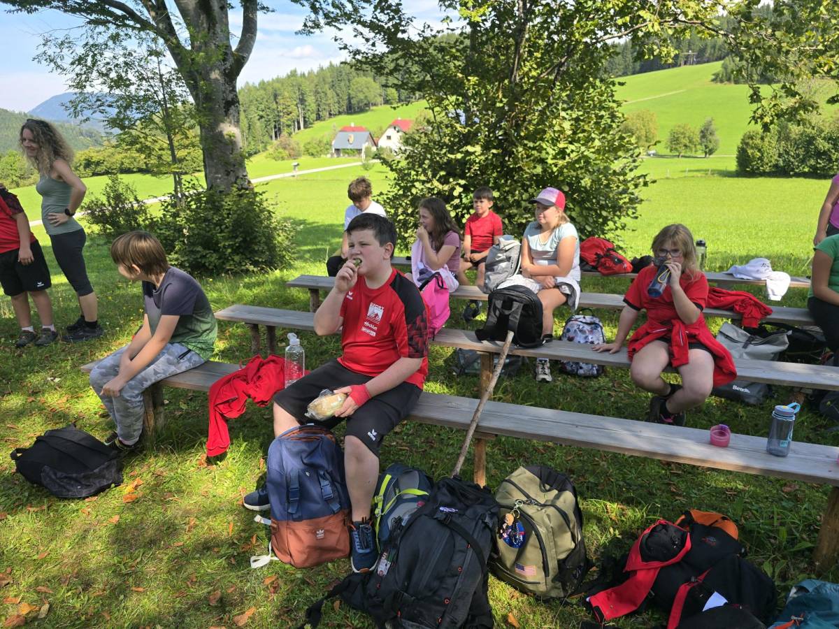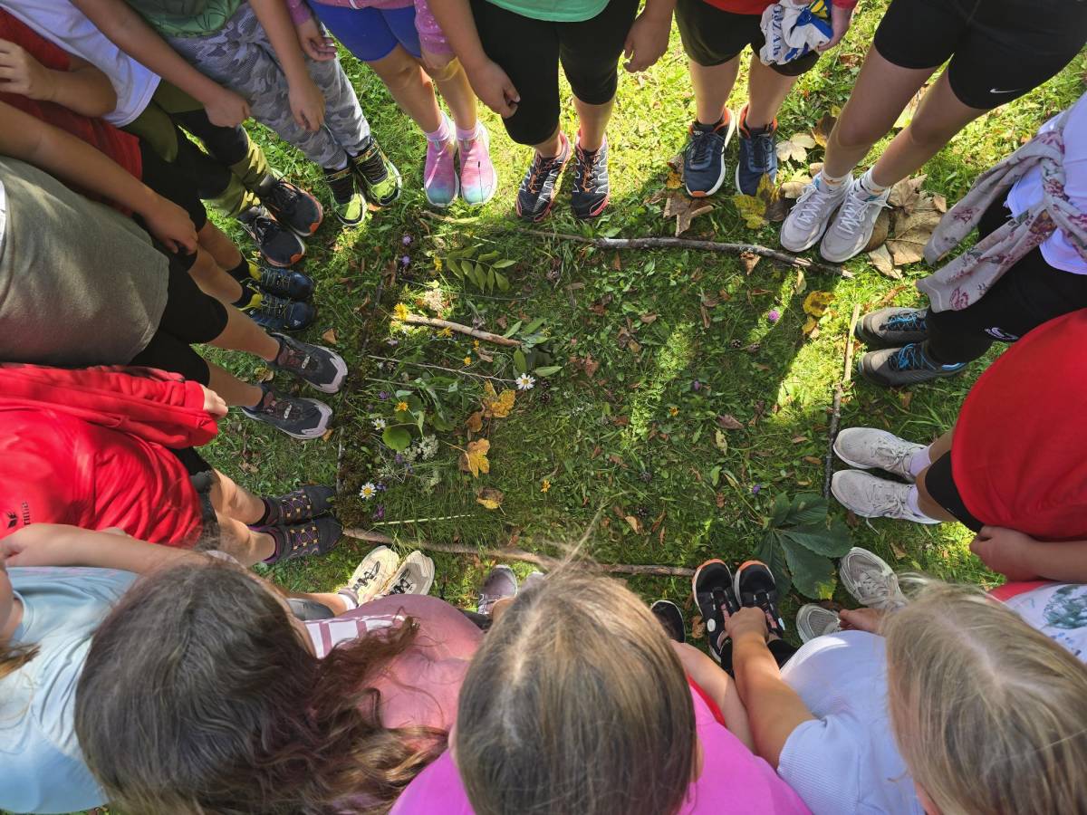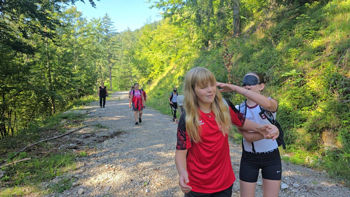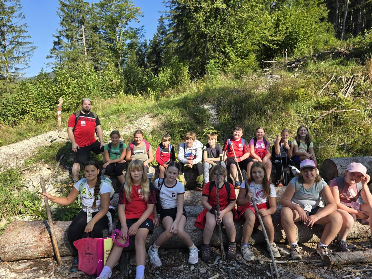 Auf dem Weg dorthin standen nicht nur Bewegung und Naturgenuss im Vordergrund, sondern auch die Stärkung der Klassengemeinschaft. Die Schülerinnen und Schüler meisterten verschiedene Aufgaben wie das blinde Führen von Partnern, das Gestalten eines Gemeinschaftsbildes aus Naturmaterialien sowie gemeinsame Klassenfotos. Dabei waren gegenseitiges Vertrauen, Rücksichtnahme und Teamarbeit gefragt.
