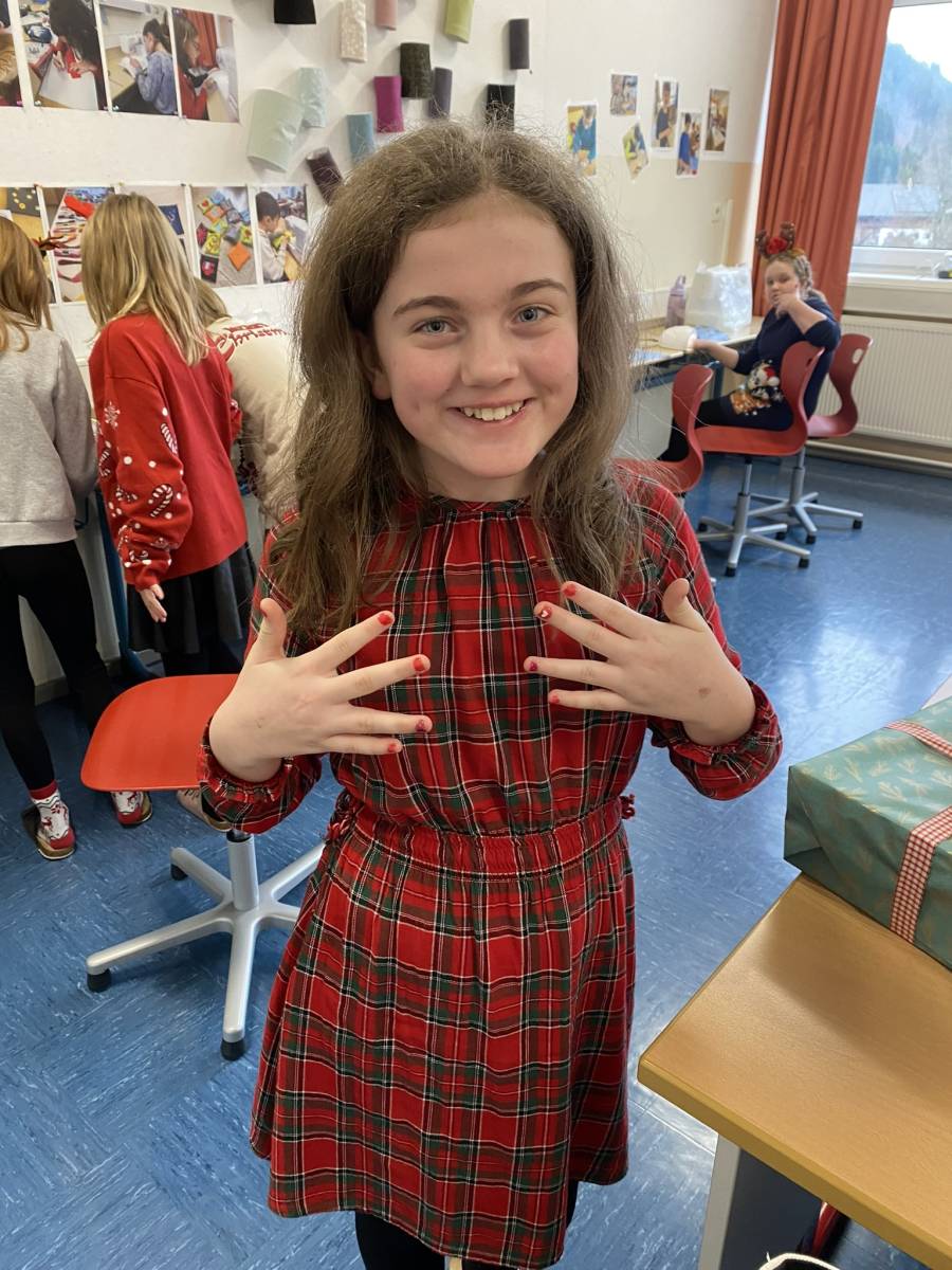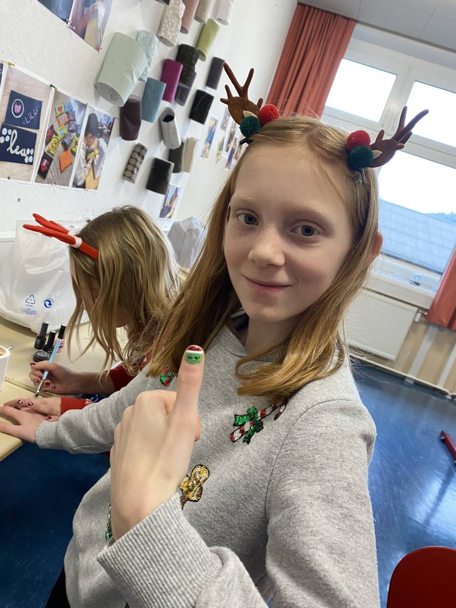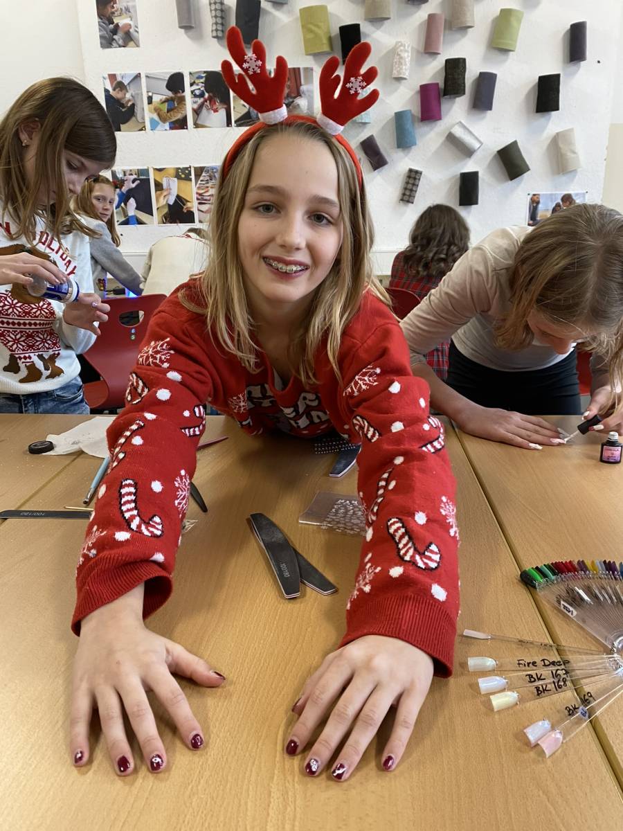 Danach startete der Workshop-Teil des Tages. Die Schülerinnen und Schüler konnten sich im Vorfeld für verschiedene Weihnachtsworkshops anmelden. Das vielfältige Angebot reichte von Weihnachtslieder singen, einem Weihnachtsparcours im Turnsaal, einem Winterspaziergang und „Christmas in England“ über Weihnachtsactivity, winterliches Nageldesign, Weihnachtslieder spielen mit den Blechbläsern bis hin zu Weihnachtspunsch und einer spannenden Weihnachtsrätselrallye. Für Jede und Jeden war etwas Passendes dabei.
