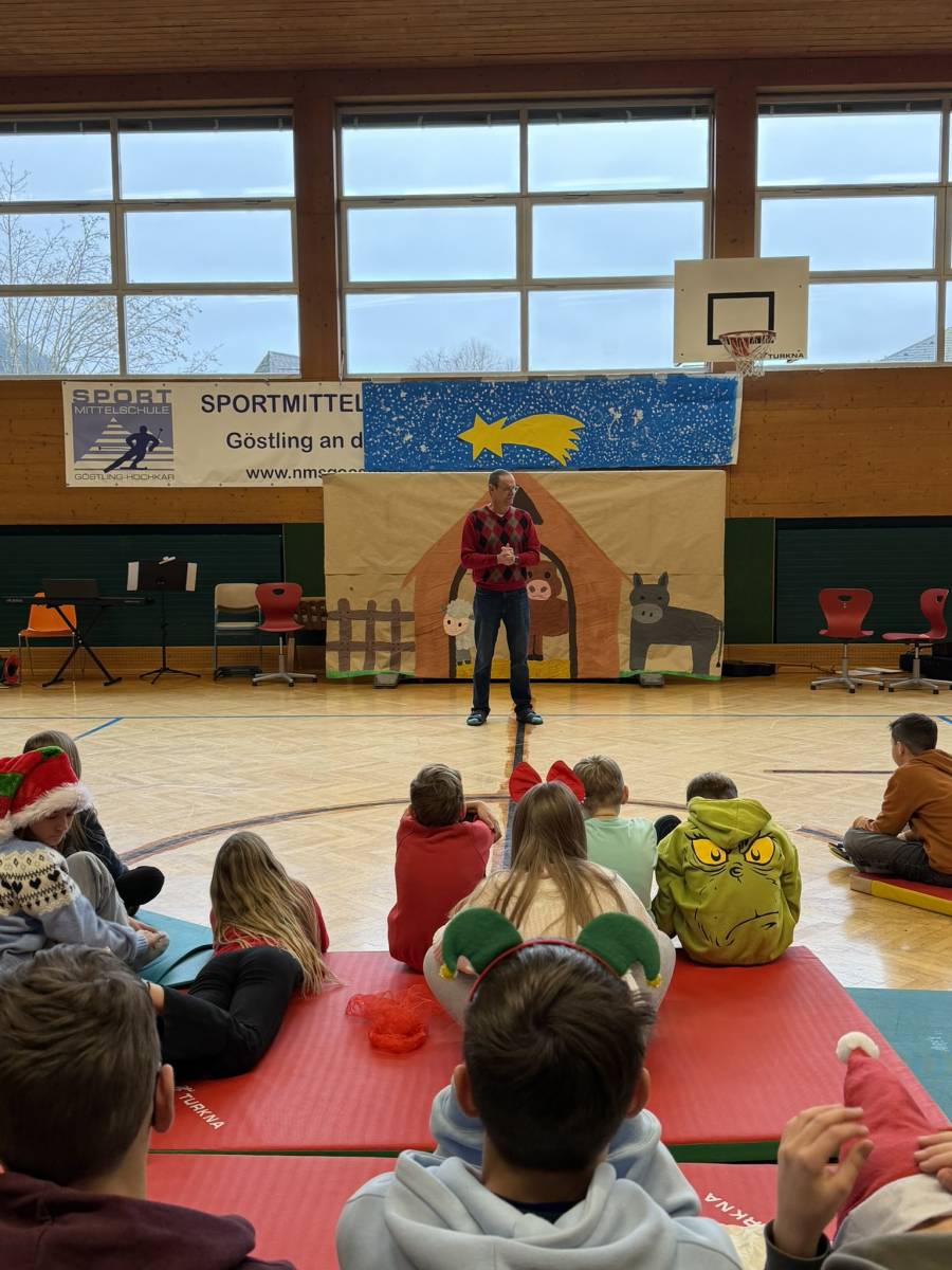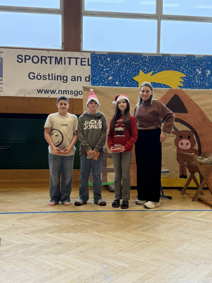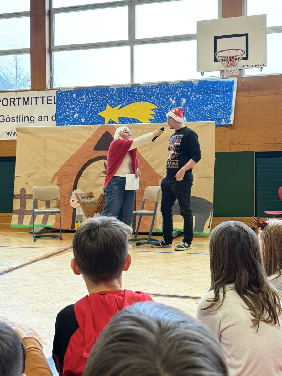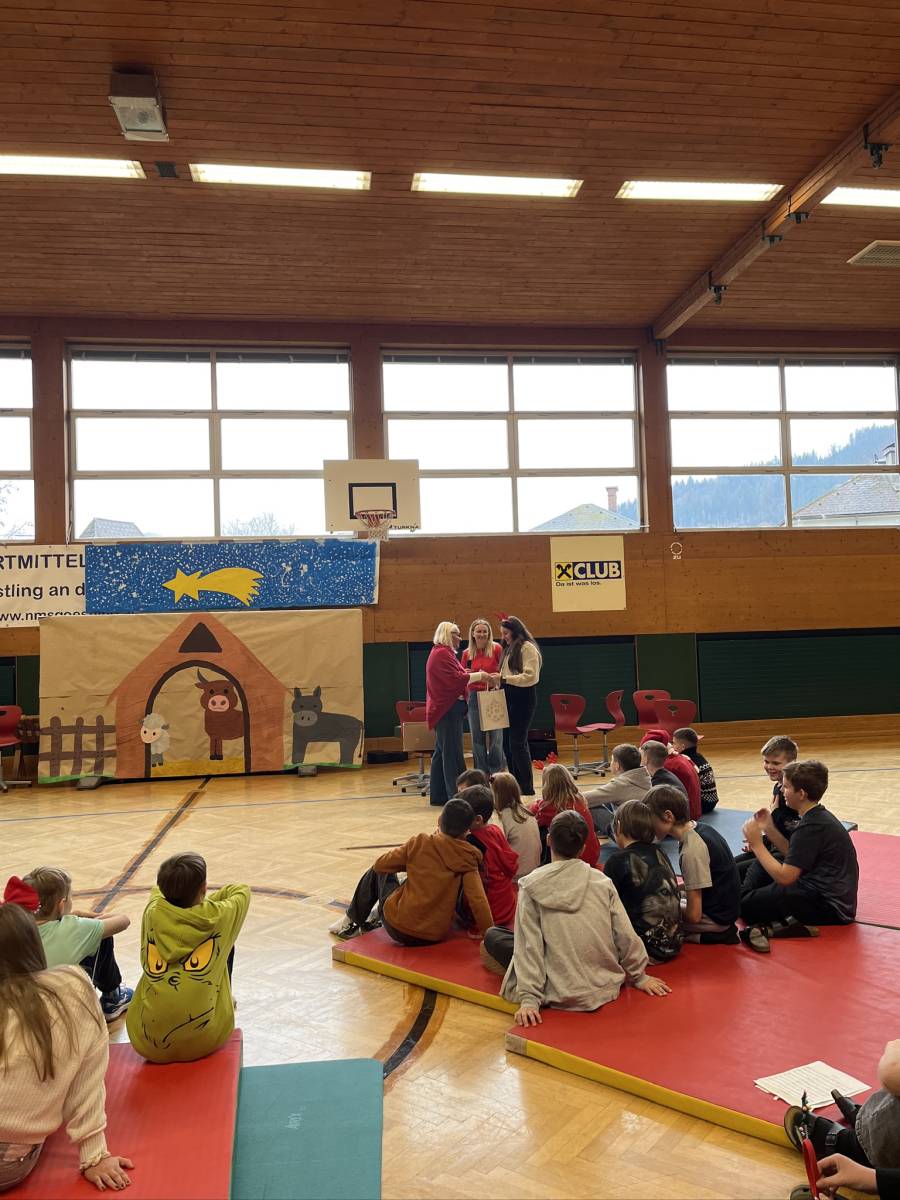 Den feierlichen Abschluss bildete die gemeinsame Weihnachtsfeier der gesamten Schule im Turnsaal. Das abwechslungsreiche Programm begeisterte das Publikum: Der Schulchor, Harmonikaspieler, Gitarrenspieler sowie zwei Musikstücke der Blechbläser sorgten für musikalische Höhepunkte. Ergänzt wurde das Programm durch Tanzeinlagen, ein Improtheater, ein Hirtenspiel sowie die Auflösung des Dezember-Schätzspiels. Besonders spannend war auch die Weihnachts-Tombola mit vielen tollen Preisen.