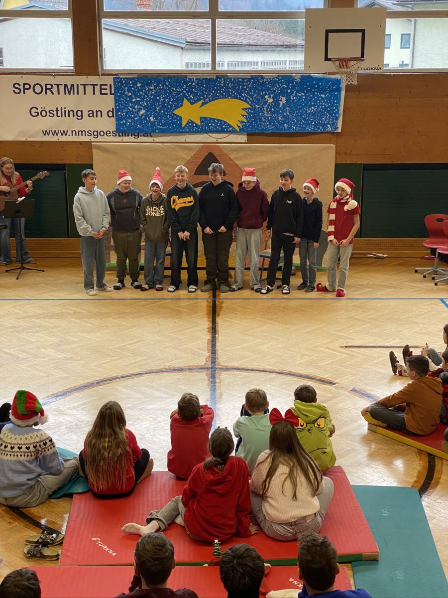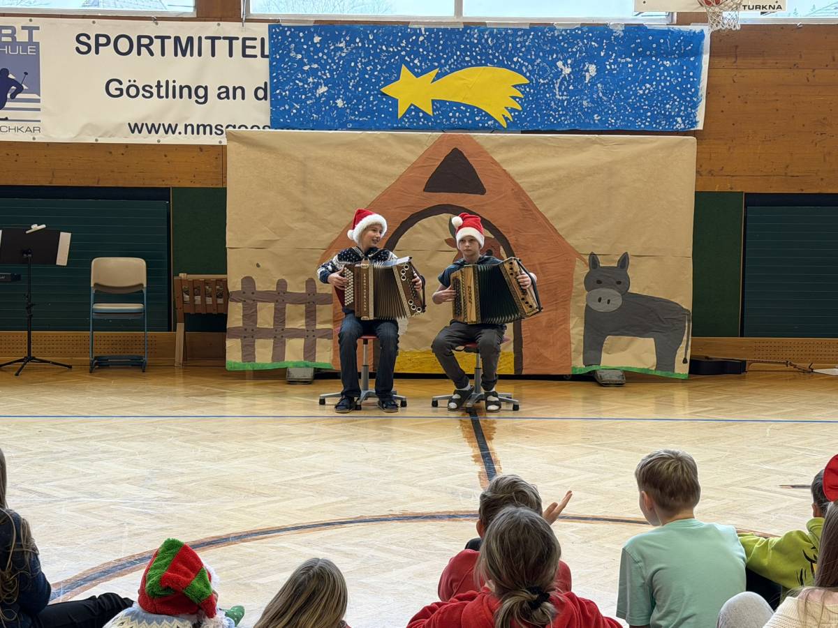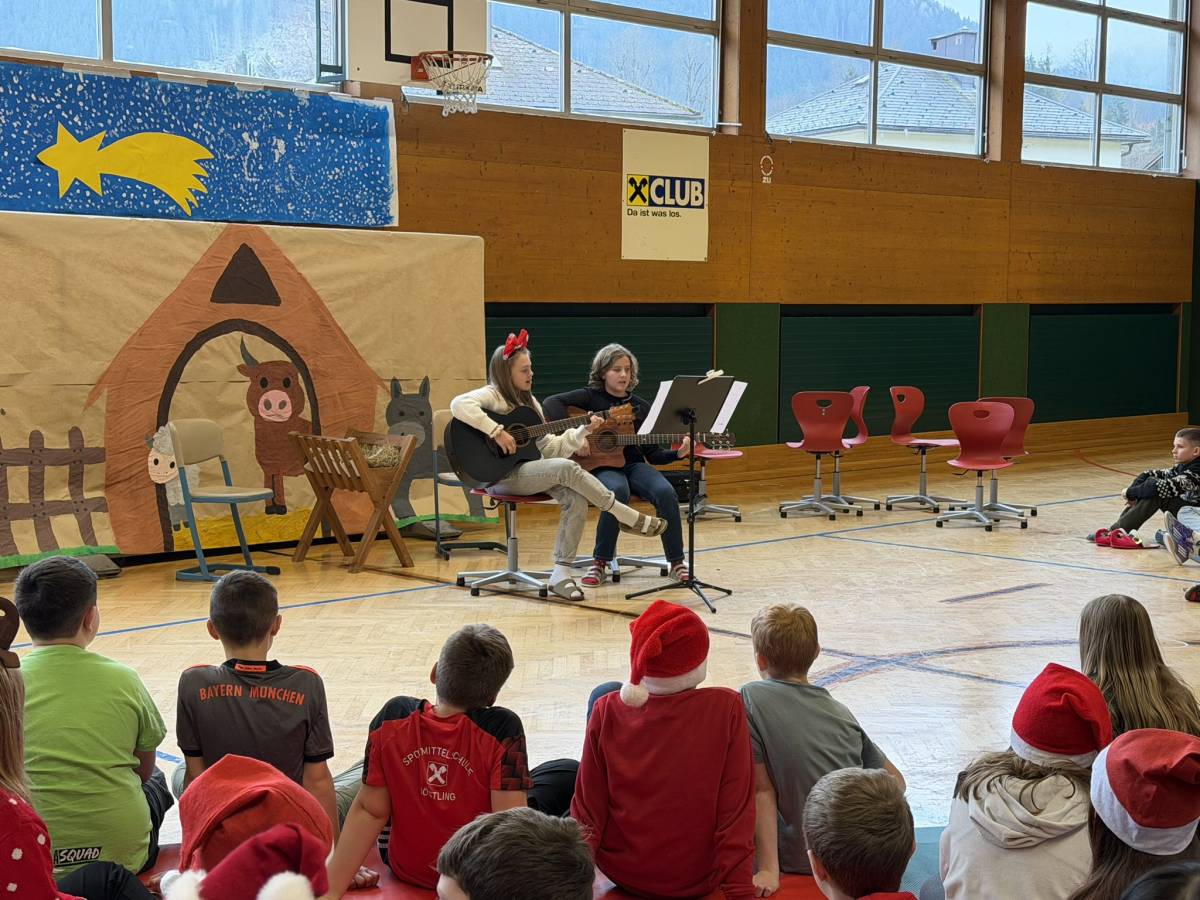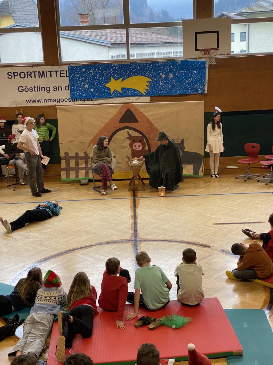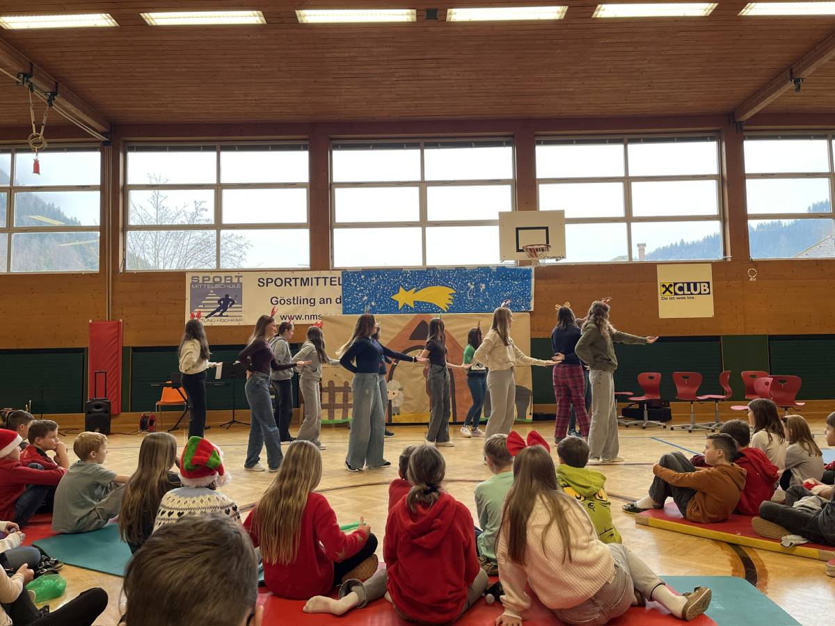 Den feierlichen Abschluss bildete die gemeinsame Weihnachtsfeier der gesamten Schule im Turnsaal. Das abwechslungsreiche Programm begeisterte das Publikum: Der Schulchor, Harmonikaspieler, Gitarrenspieler sowie zwei Musikstücke der Blechbläser sorgten für musikalische Höhepunkte. Ergänzt wurde das Programm durch Tanzeinlagen, ein Improtheater, ein Hirtenspiel sowie die Auflösung des Dezember-Schätzspiels. Besonders spannend war auch die Weihnachts-Tombola mit vielen tollen Preisen.